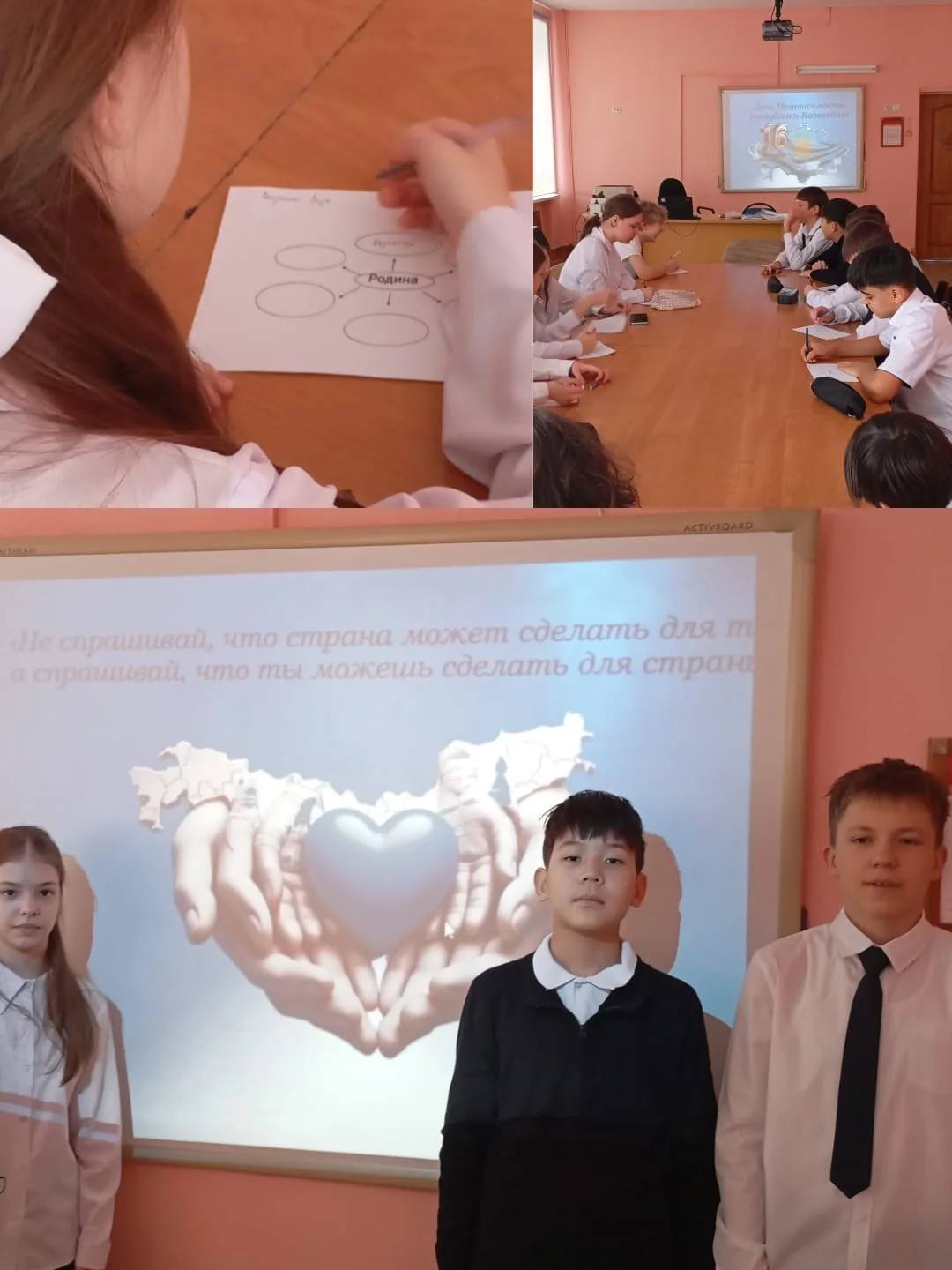 15.12 Күні 7 "Д" сыныбында Қазақстан Республикасының Тәуелсіздік күніне арналған сынып сағаты өтті. Іс-шара барысында оқушылар тәуелсіз мемлекеттің қалыптасуының негізгі кезеңдерімен танысып, маңызды тарихи оқиғалар мен ұлттық құндылықтарды еске түсірді.