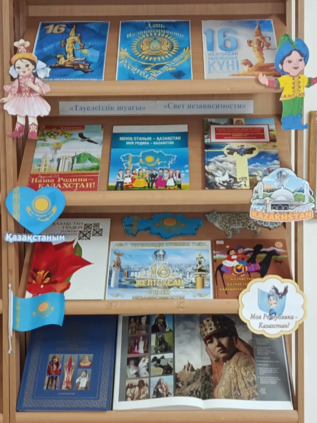 "Балалар кітапханасы" әлеуметтік жобасы аясында 2025 жылдың 10 желтоқсанында мектеп кітапханасында "Тәуелсіздік нұры" атты кітап көрмесі өтті.