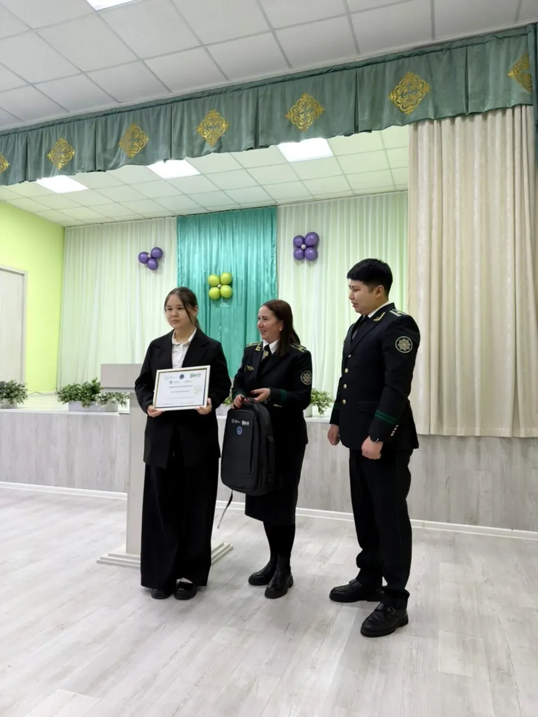Солтүстік Қазақстан облысы Білім басқармасының тәрбие жұмысы бөліміның бас маманы Тұрлыбаева Замзагүл Болатқызы Экономикалық тергеп-тексеру департаментінің өкілдері — қызмет майоры Идрисов Диас Серікұлы және экономикалық тергеп-тексеру қызметінің подполковнигі Синякина Оксана Юрьевнамен бірге мектебімізге арнайы келіп, 10 «А» сынып оқушысы Қанат Самираны «Қаржы сақшысы (Qarjy saqshysy)» интерактивті білім беру ойынының облыстық финалының жүлдегері ретінде марапаттады.