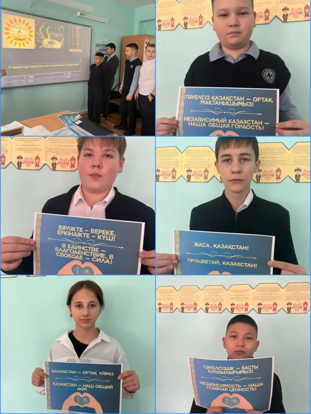 Мероприятие прошло в форме познавательной игры «Кто хочет стать знатоком Независимого Казахстана». Учащиеся активно участвовали в игре, отвечали на вопросы, демонстрировали хорошие знания истории независимости, государственных символов, выдающихся личностей и достижений Казахстана.