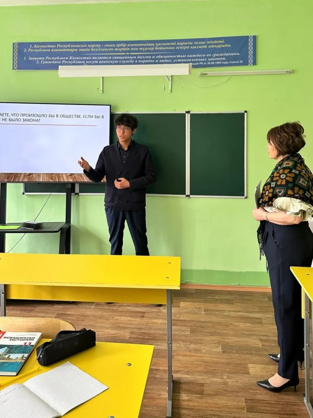 В рамках реализации единой программы воспитания «Адал азамат», утвержденной Министерством просвещения РК, старшеклассники обсудили ключевые изменения в Основном законе нашей страны. Для выпускников, стоящих на пороге взрослой жизни, понимание своих прав и обязанностей — это основа успеха. В ходе встречи мы: Разобрали основные принципы обновленной Конституции РК. Обсудили, как государственная политика в сфере образования помогает молодежи реализовать свой потенциал. Поговорили о правовой грамотности и культуре законопослушания. Углубились в ценности «Адал азамат» — честность, ответственность и созидание. Конституция — это не просто документ, это общественный договор, который определяет жизнь каждого гражданина. Формирование гражданской ответственности и правового сознания выпускников является нашей приоритетной задачей. Вместе мы строим Справедливый Казахстан!