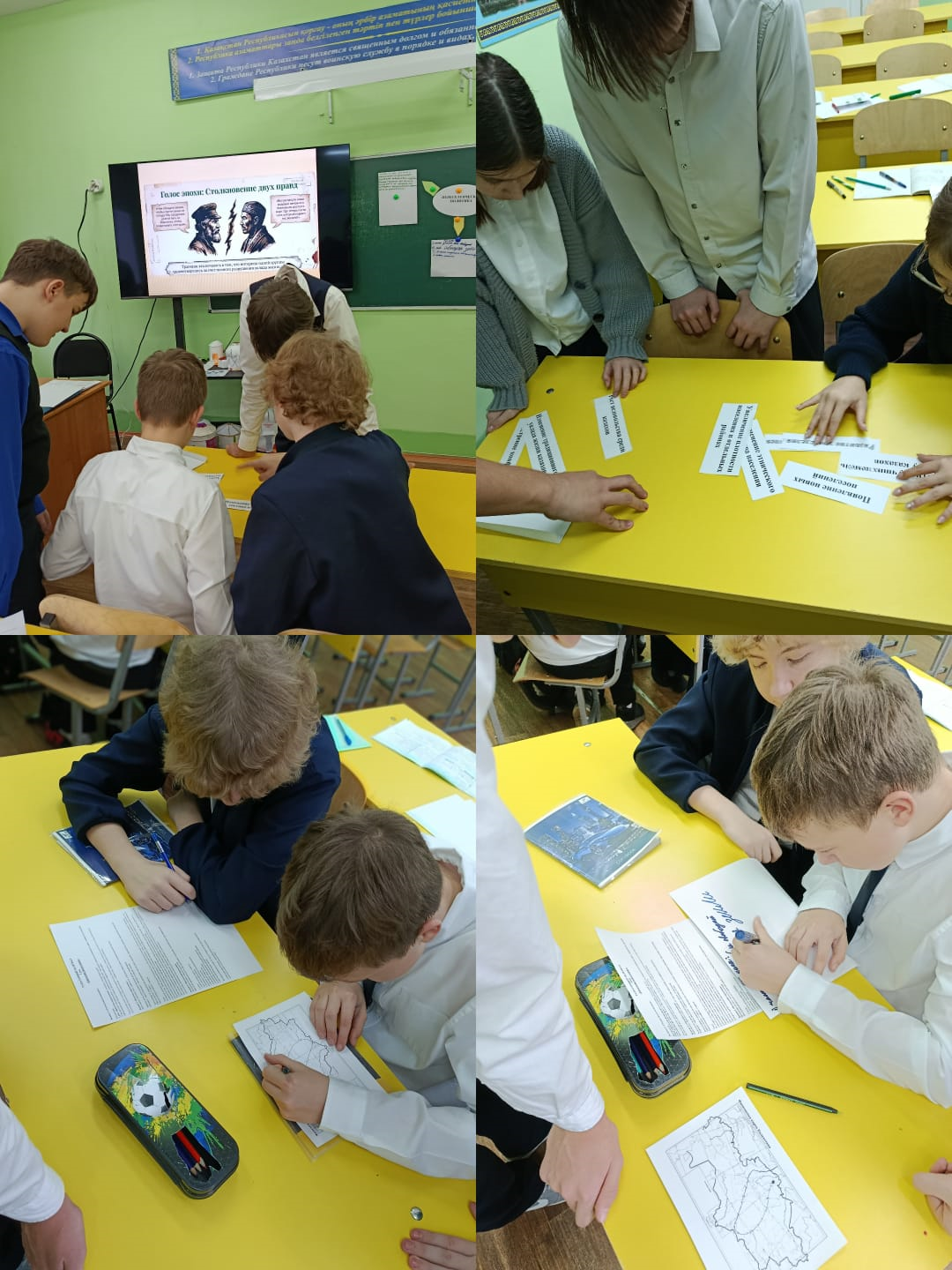 В рамках декады методического объединения русского языка и литературы, английского языка и истории учителем Дарбаевой Е.Н. был проведён открытый урок по теме " Массовая крестьянская колонизация Казахстана". Урок прошёл на высоком методическом уровне: учащиеся активно работали с историческими источниками и картой. Главной целью урока был анализ переселенческой политики Российской империи на территории Казахстана. Ребята высказывали свои мнения, делали выводы: Доценко Богдан, Князев Александр, Кузьмин Артём, Саудабеков Тамирлан. Занятие отличалось четкой структурой, продуманными заданиями и живым интересом со стороны учащихся.